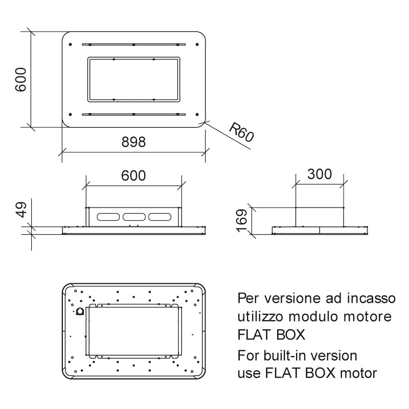 Comenzile hotei sunt controlate prin telecomandă și hota dispune de un motor plat de 900 m3 / h, si 2 spoturi LED.