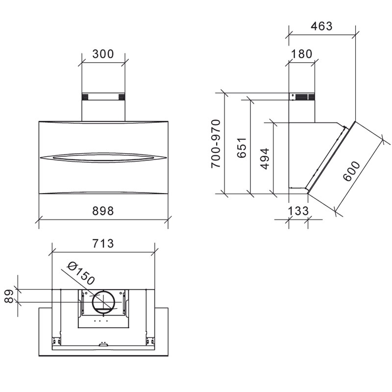 O linie elegantă, dar și practică: panoul hotei este ridicat pentru a facilita operațiile de curățare și întreținere.
