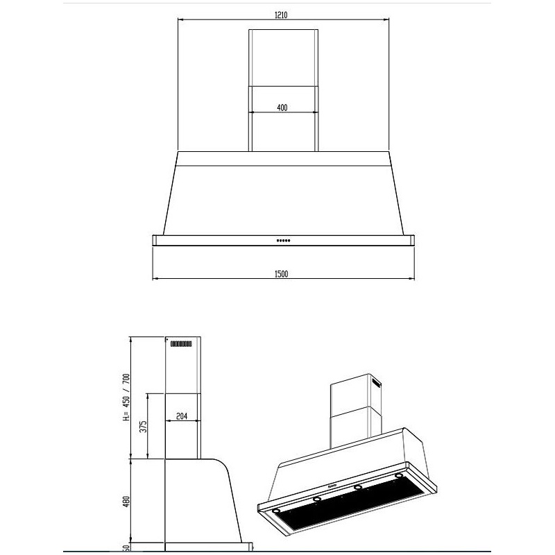 Hota decorativa Lofra Dolcevita 150 , 150 cm, 1 motor, 4 viteze, 800 m3/h, telecomanda, negru