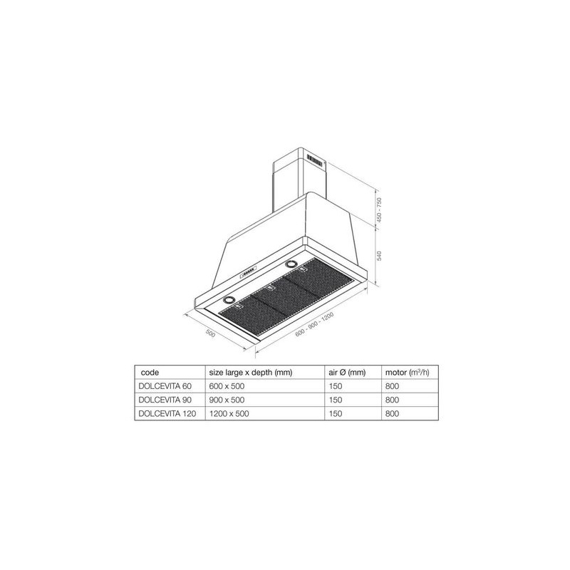 Hota decorativa Lofra Dolcevita 60 , 60 cm, 1 motor, 4 viteze, 800 m3/h, telecomanda, negru